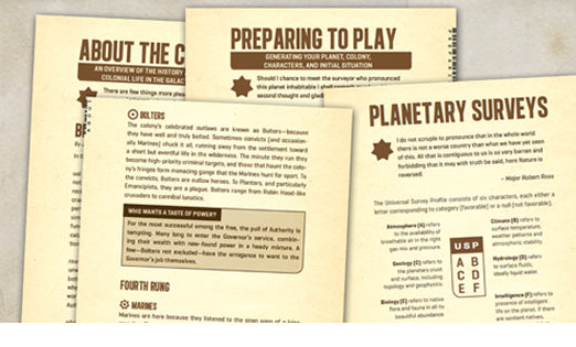 Durance is a fast-paced, low-prep, highly collaborative game designed for 3-5 players and one or more sessions of play and includes a detailed, engaging science fiction setting. Durance began as an entry to the Game Chef design competition and was produced with the support of backers in a very successful Kickstarter project.