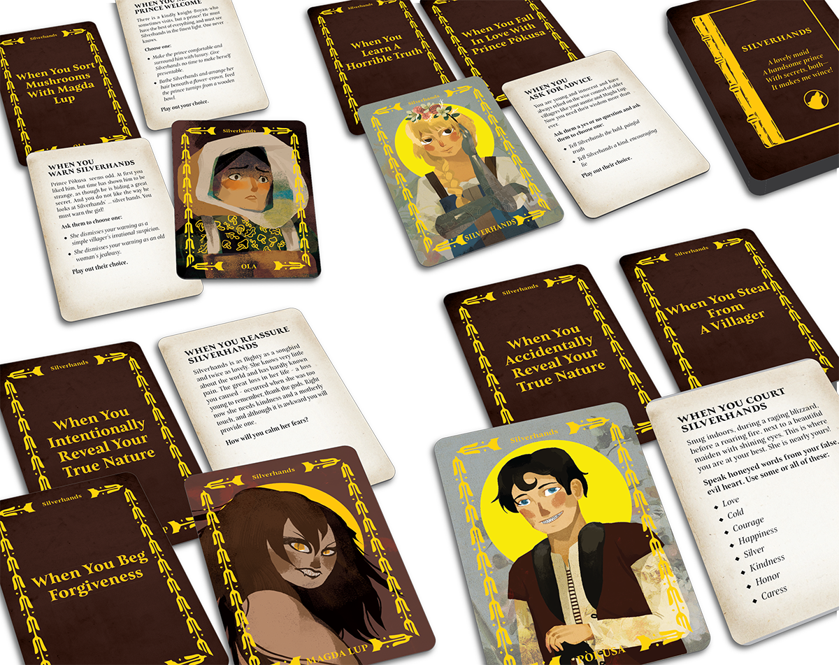 Zhenya’s Wonder Tales is a set of 6 card games retelling dark, Slavic-inspired fairy stories in 1-2 hours.